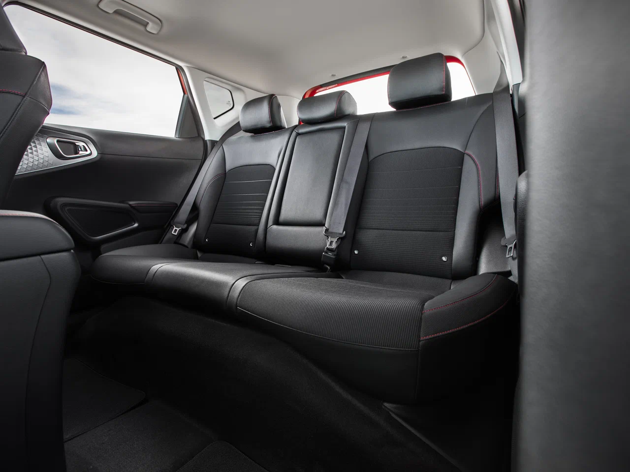 - Комбинированная отделка сидений из кожи и ткани с красной прострочкой