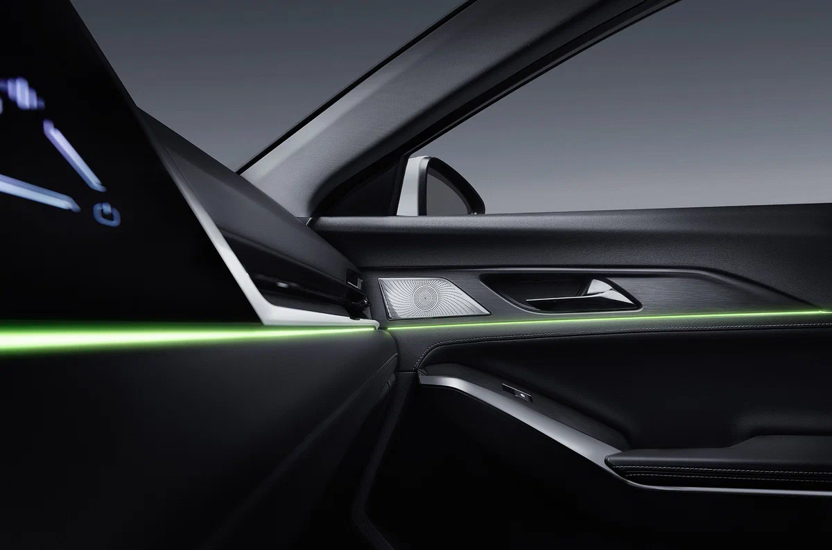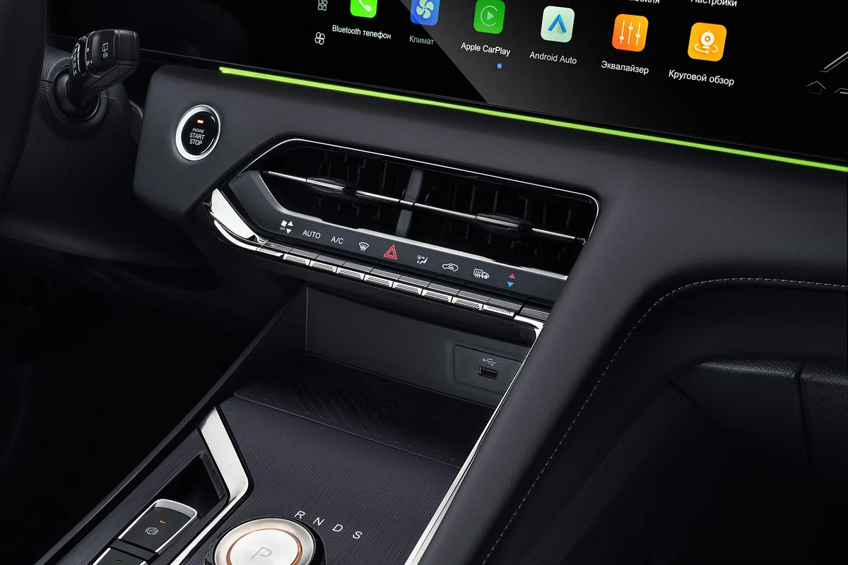 - Мультимедийная система 12,3" с 12 динамиками (с сабвуфером) и поддержкой MP5, Bluetooth, Apple CarPlay и Android Auto
