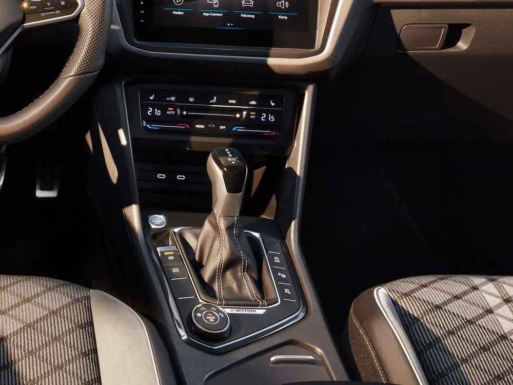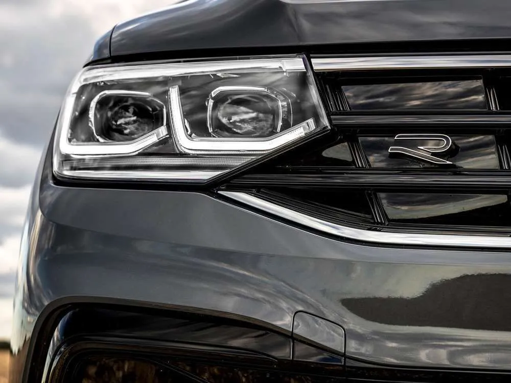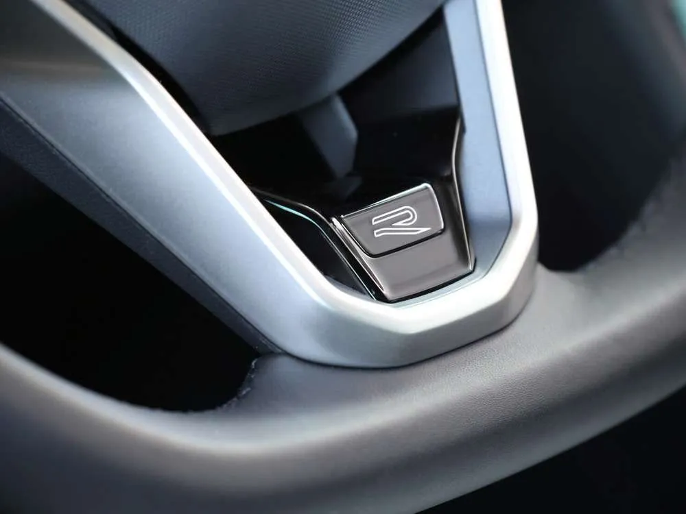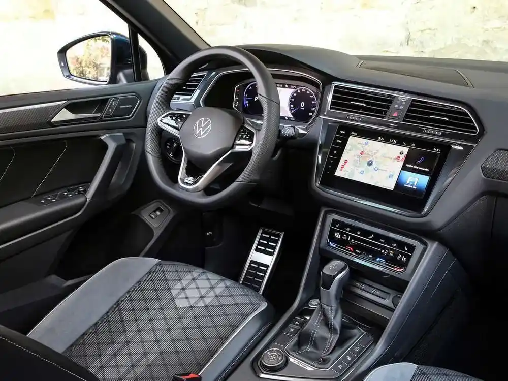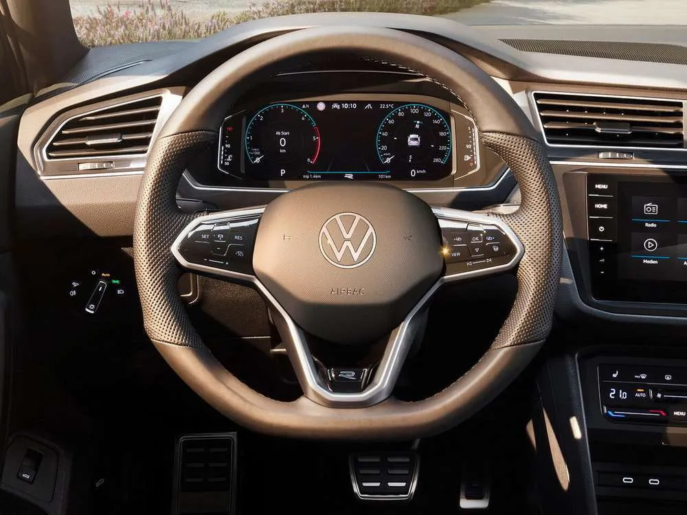 - Многофункциональное кожаное рулевое колесо R-Line, с сенсорными кнопками и подрулевыми переключателями